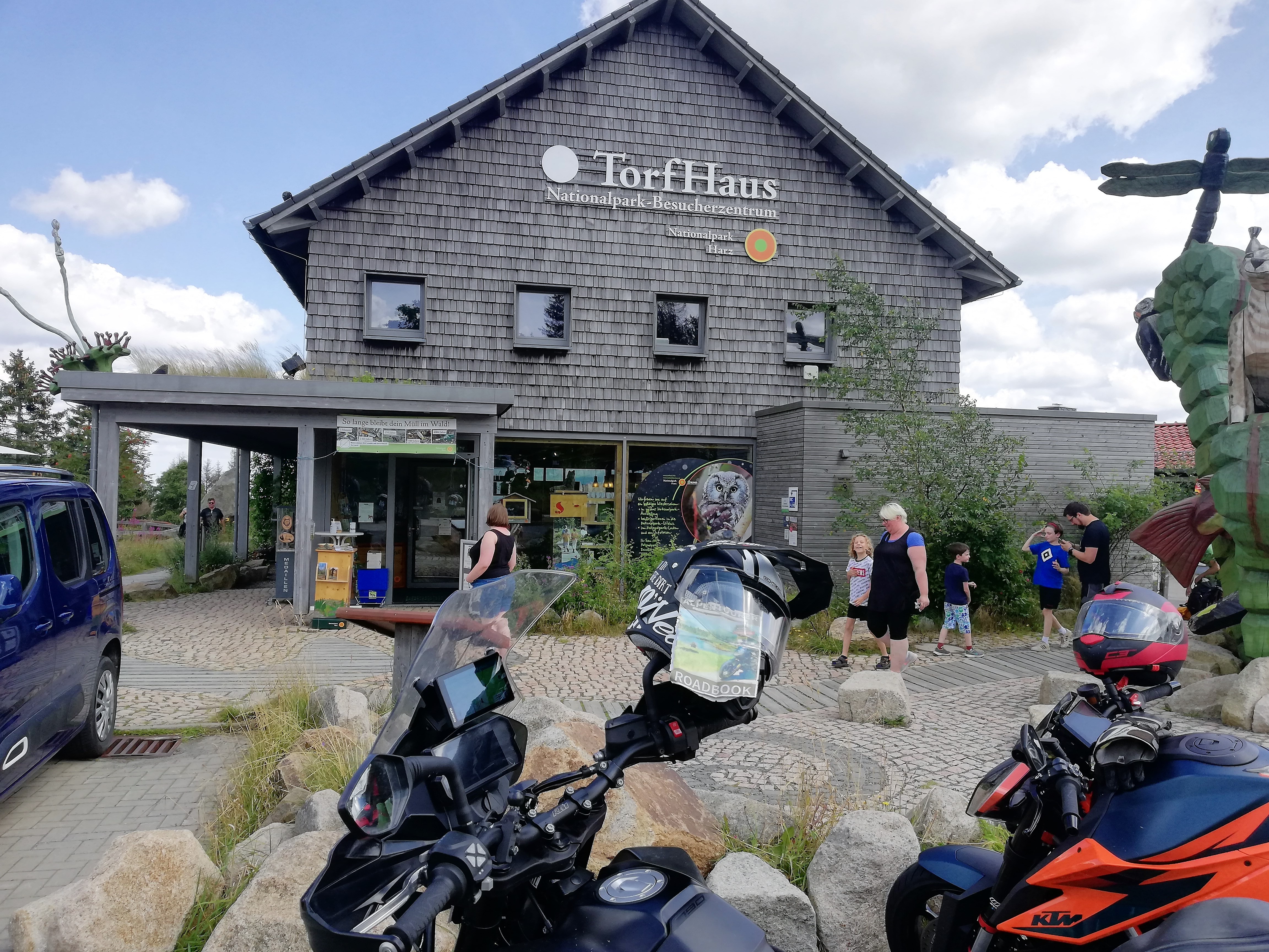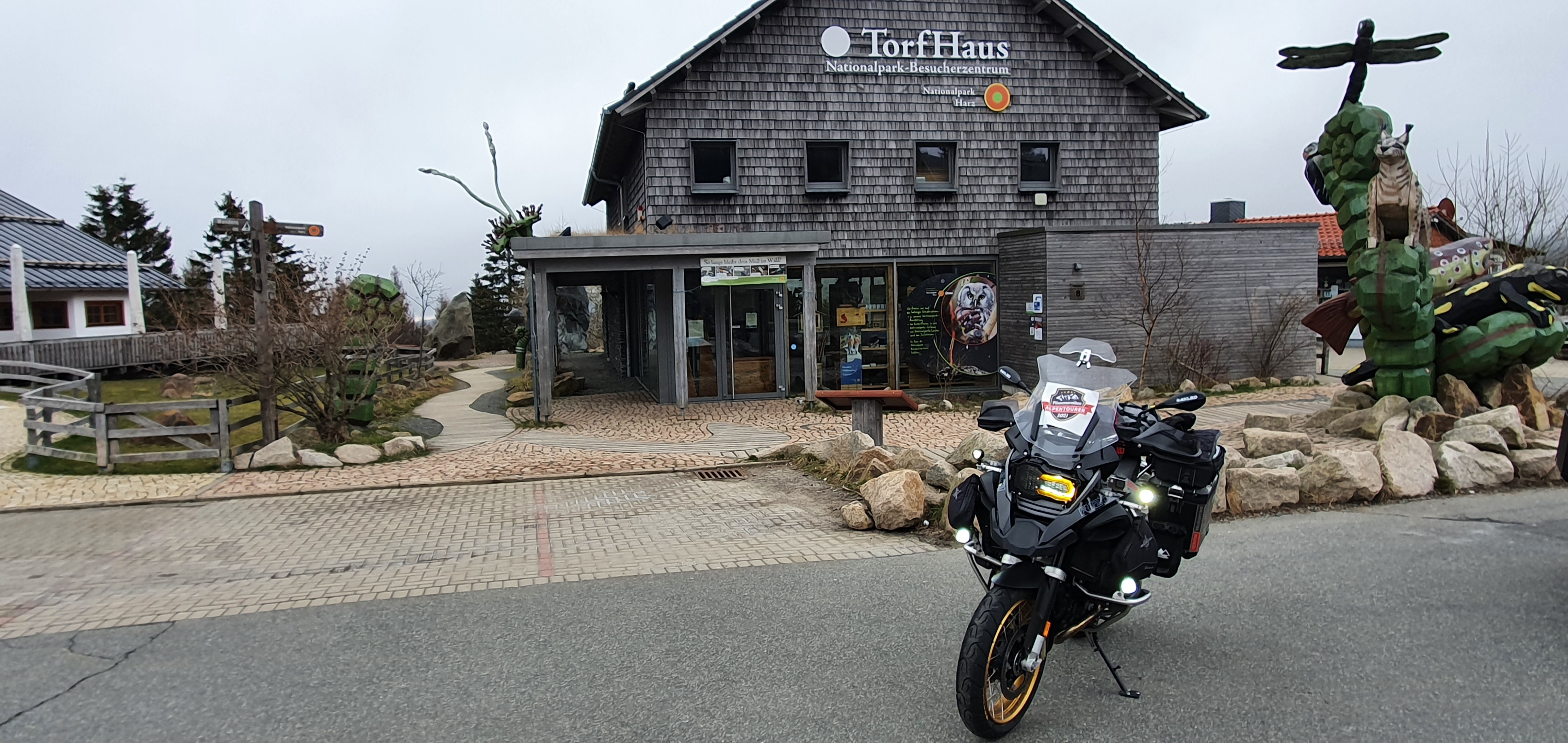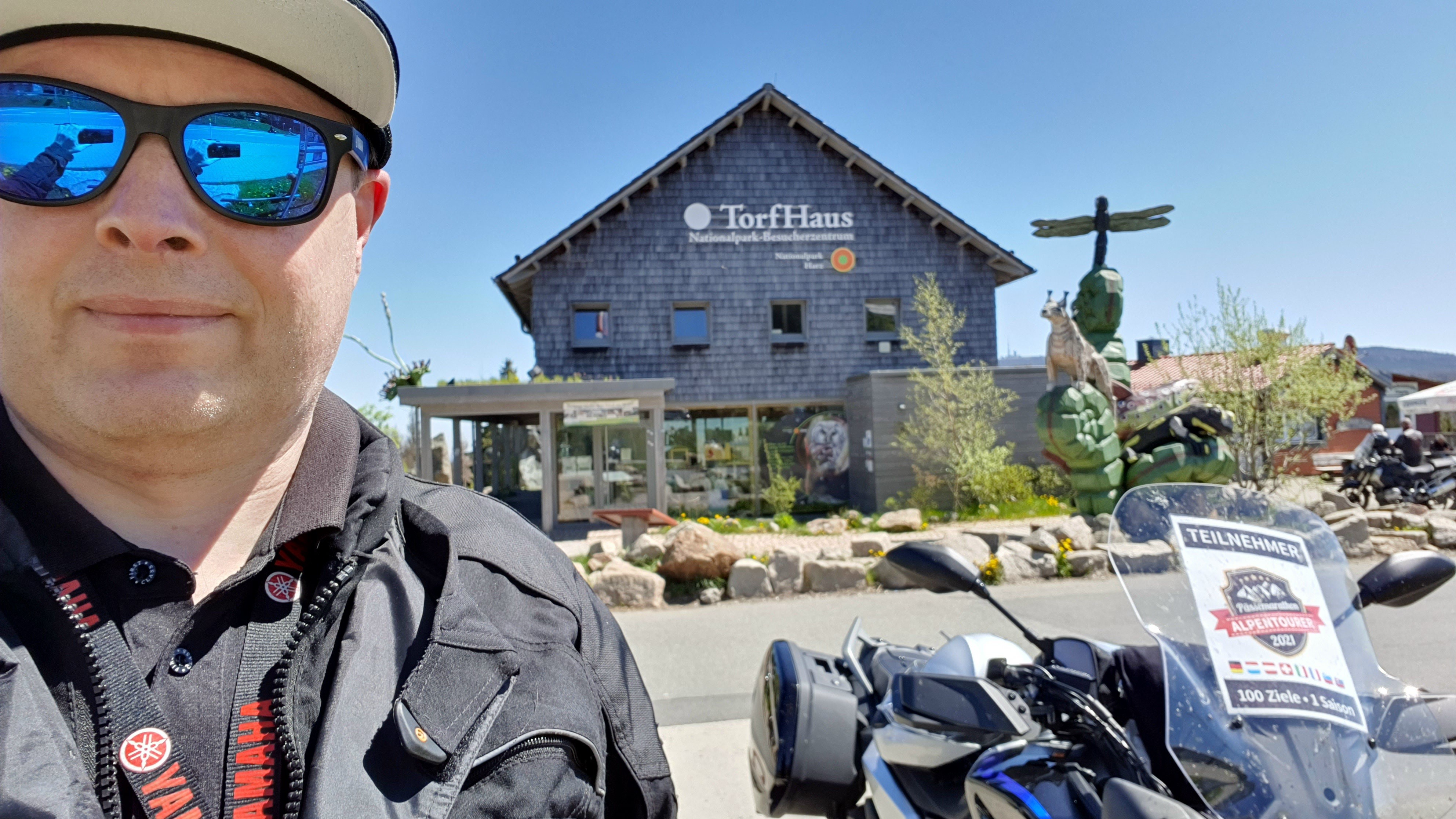 Der Aussichtspunkt Torfhaus erfreut sich vor allem an Wochenenden großer Beliebtheit. Hier hat sich ein Bikertreff etabliert. Allerdings liegt der Punkt unmittelbar an der recht stark befahrenen B4, die Braunlage mit Bad Harzburg verbindet. Wir empfehlen daher die deutlich entspanntere Anfahrt ab Altenau über die L504. Auf knapp über 800 Metern, dem höchsten anfahrbaren Punkt im Harz westlich vom Brocken, ist die Fernsicht auf den zentralen Gipfel dieses Mittelgebirges recht gut. |