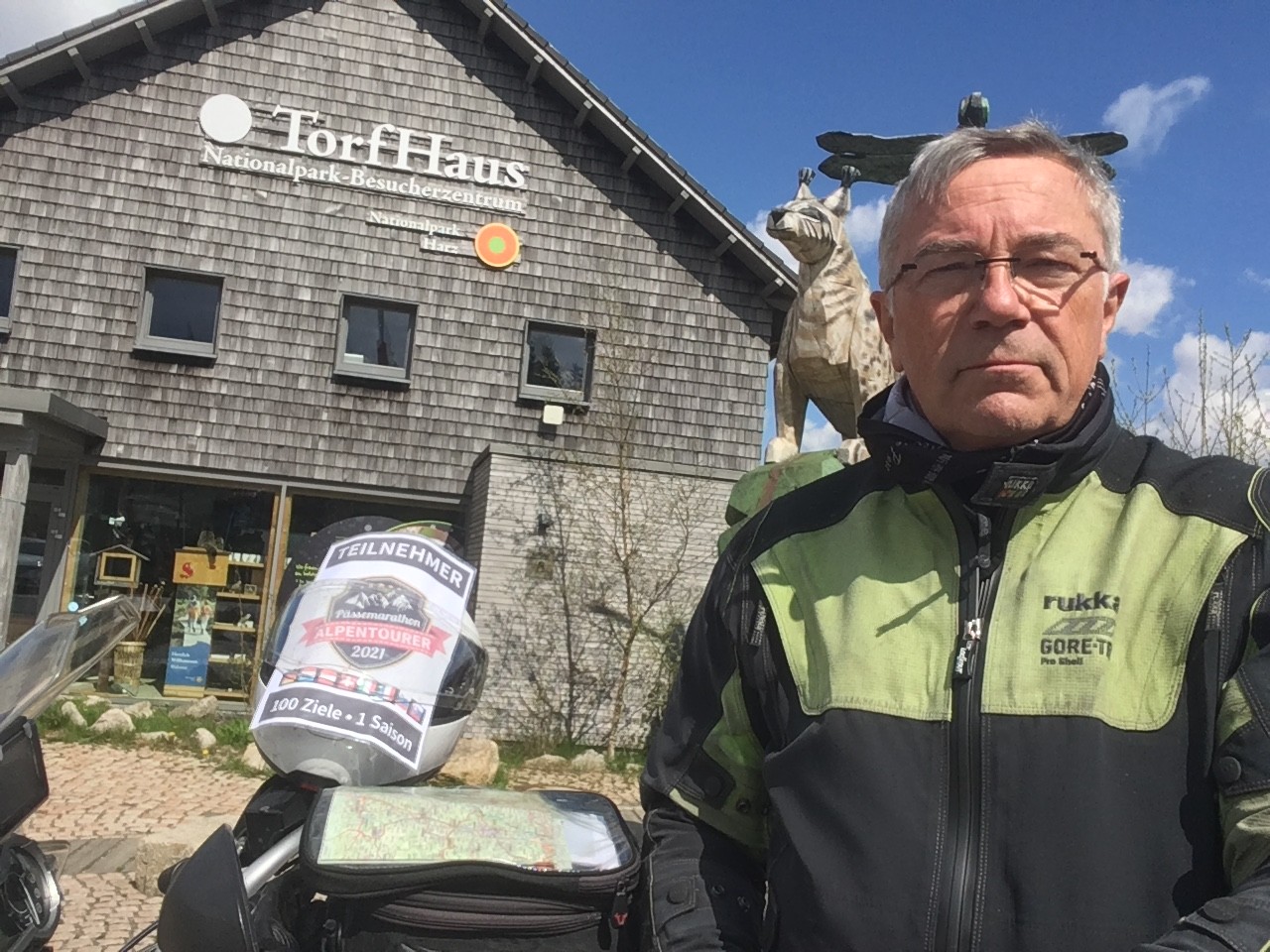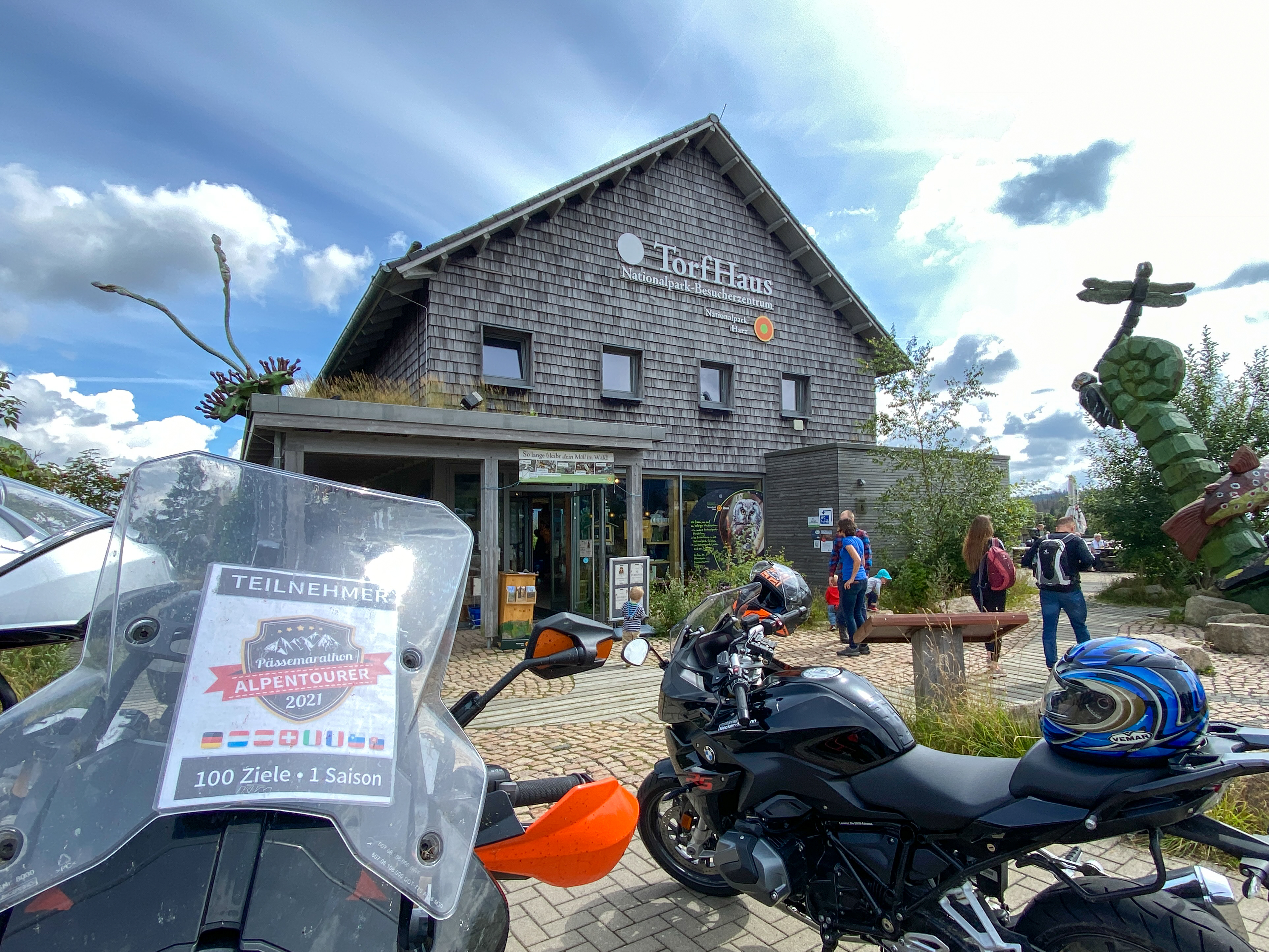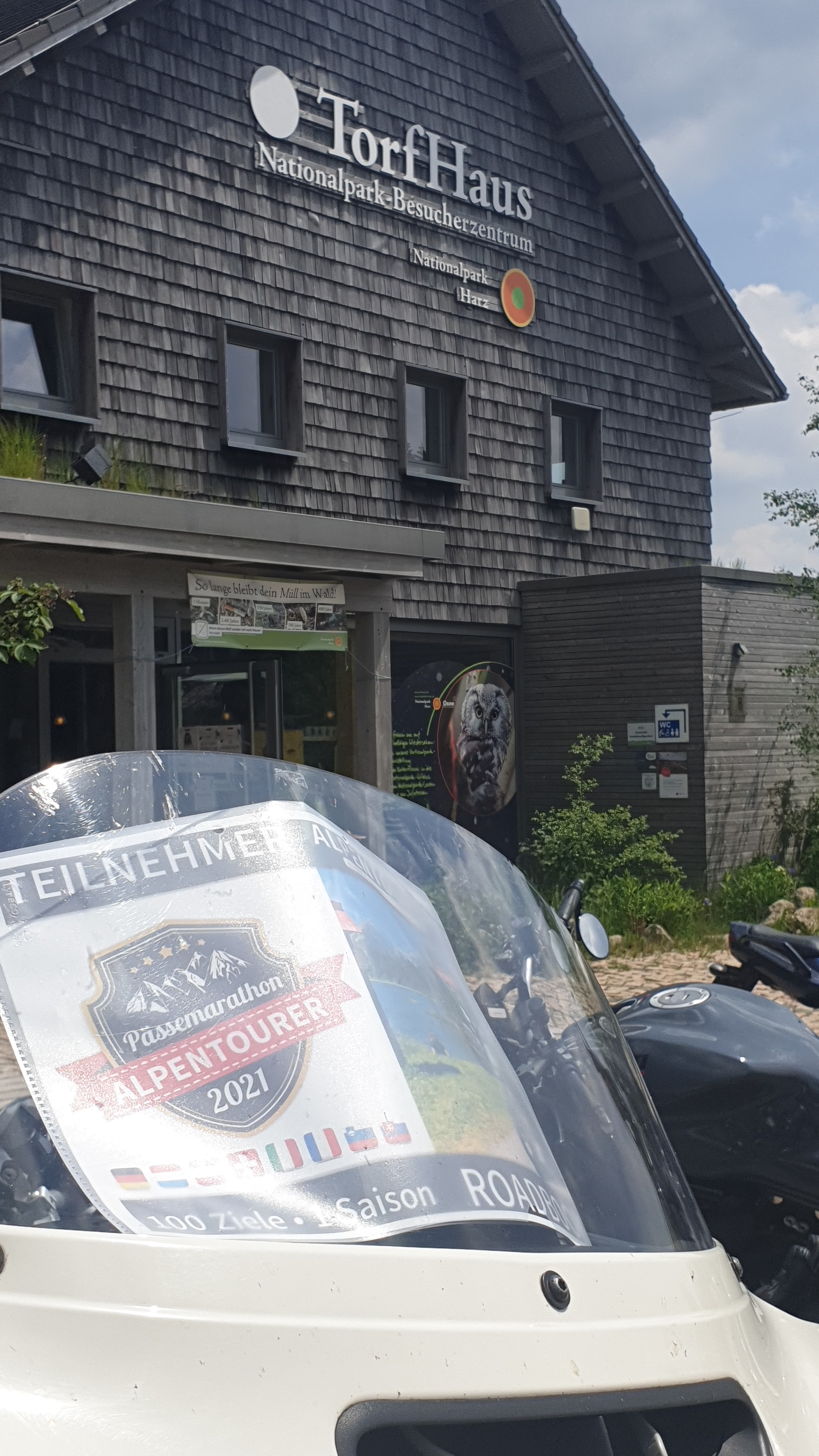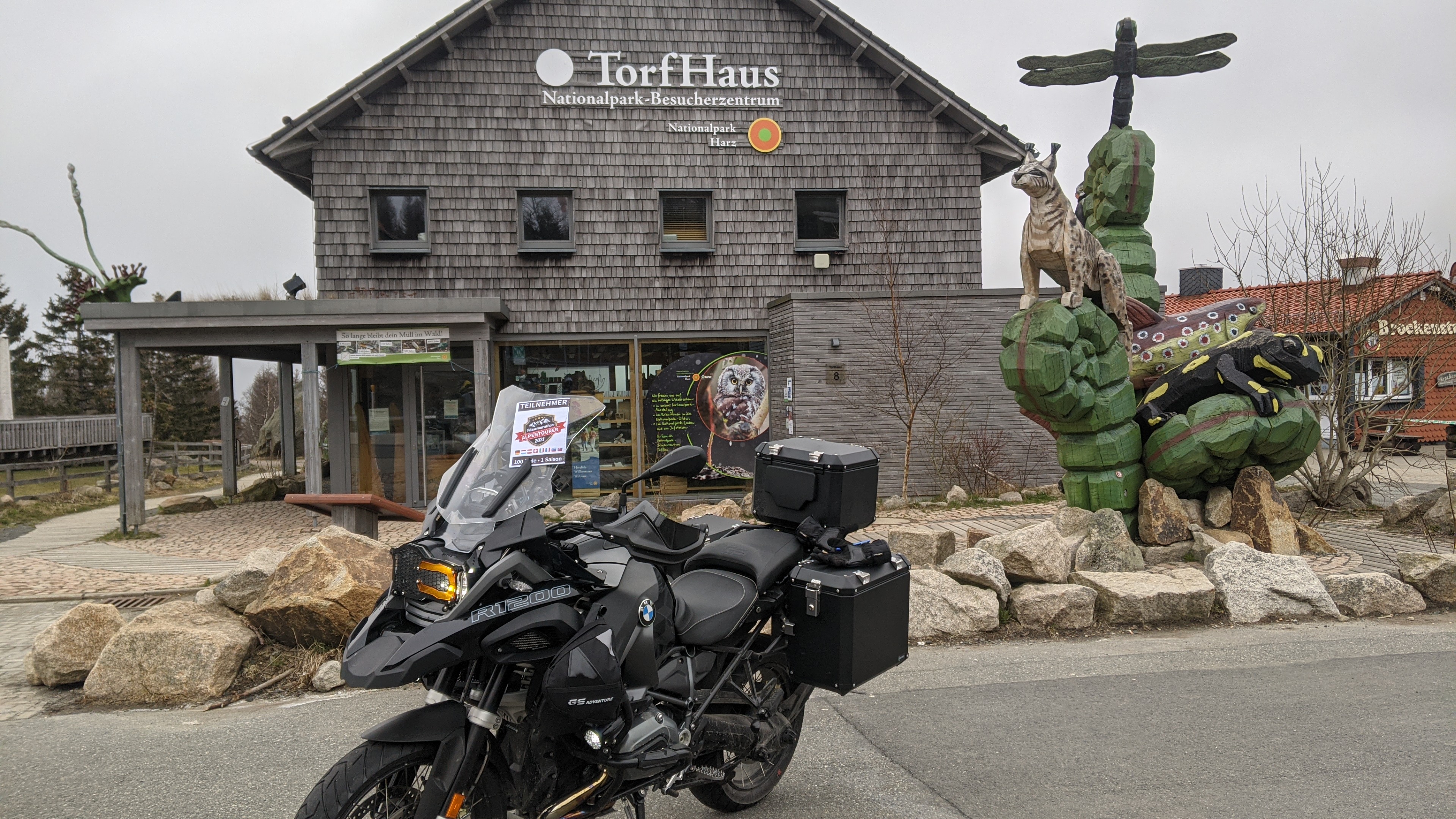 Der Aussichtspunkt Torfhaus erfreut sich vor allem an Wochenenden großer Beliebtheit. Hier hat sich ein Bikertreff etabliert. Allerdings liegt der Punkt unmittelbar an der recht stark befahrenen B4, die Braunlage mit Bad Harzburg verbindet. Wir empfehlen daher die deutlich entspanntere Anfahrt ab Altenau über die L504. Auf knapp über 800 Metern, dem höchsten anfahrbaren Punkt im Harz westlich vom Brocken, ist die Fernsicht auf den zentralen Gipfel dieses Mittelgebirges recht gut. |
