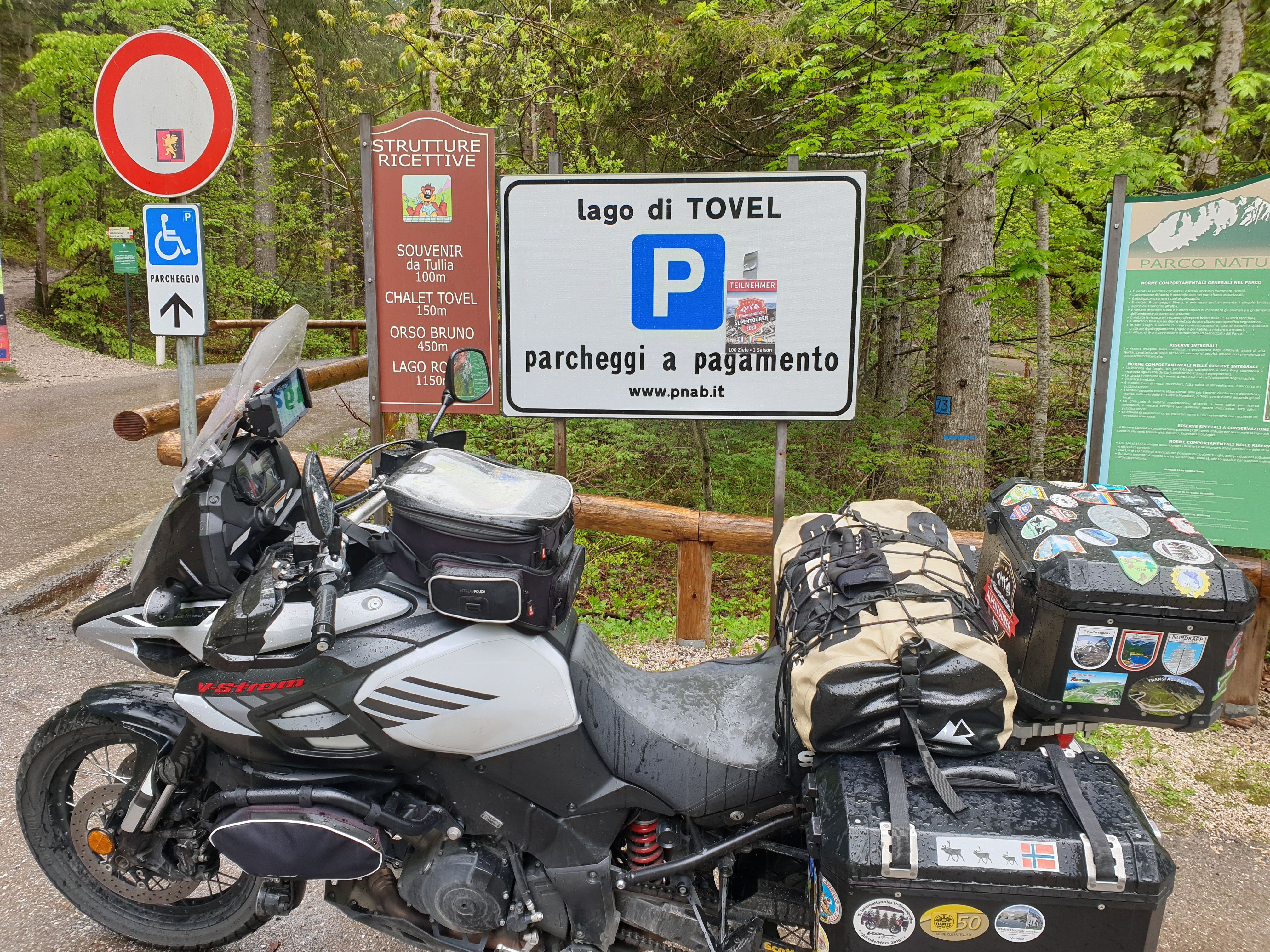 | Mautstraße | Von Juni bis September kostenpflichtiger Parkplatz am See. Ticket muss vorab an der Kasse in Tuenno gekauft werden. Pkw € 6,00; Motorrad € 3,00. |