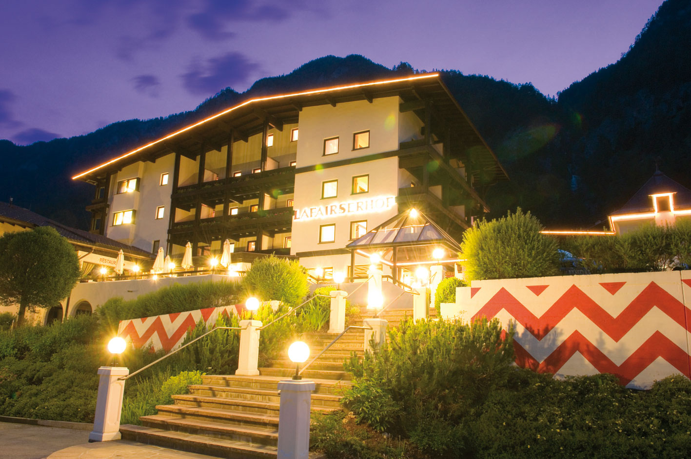 Eintreten und Wohlfühlen – das ist das Motto des 4-Sterne Hotels Das Lafairs im Tiroler Oberland. Mitglieder der Familie Lenz sind selbst begeisterte Biker und verbinden Mobilität, Unabhängigkeit und Freiheit mit diesem Hobby. Das Haus hat eine zentrale Ausgangslage und ist damit optimal für traumhafte Ausflugsfahrten auch in die Schweiz und nach Italien geeignet. Ein Guide fährt auf Wunsch mit und zeigt dabei manch verborgenes Highlight. So können beispielsweise bei der „Schmuggler-Tour“ im Laufe nur eines halben Tages die beiden Duty-Free-Orte Samnaun und Livigno angesteuert werden. Zurück im Hotel stehen Schrauberecke und der Dampfstrahler dann natürlich schon bereit. Auch kulinarisch wird man hier verwöhnt: mit regionalen Produkten aus der Region rund um Pfunds, die zu ausgezeichneten Gerichten werden. |