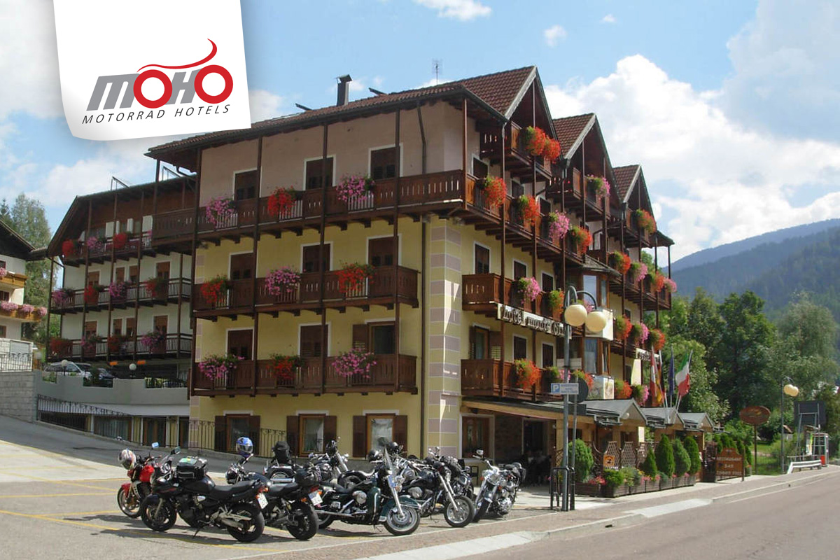 Maria Rosa, die Gas(t)geberin des MoHo-Hotels im herrlichen Trentino, trägt das Motorradherz am rechten Fleck. Hier verbringst du einen romantischen Urlaub im herrlichen Val di Sole mit dem Charme der kleinen Dörfer und der kurvenreichen Bergstrecken. Nach einer tollen Ausfahrt mit dem Motorrad in den Brenta Dolomiten kann man im Wellnessbereich relaxen. Hier lautet die Devise: Motorradkluft gegen Bademantel tauschen und in Sauna und Hallenbad abtauchen. Danach erwartet dich eine originelle Mischung aus traditioneller trentinischer Küche mit Südtiroler Anlehnung und mediterranem Einfluss. Motorradurlaub in Val di SoleDank der idealen Lage an der Zufahrt zum Tonalepass, ist das Hotel das perfekte Basislager für Touren in alle Himmelsrichtungen. Von hier aus erreicht man die angrenzende Lombardei, den Gaviapass, Livigno, Bormio, das Stilfserjoch und die Schweiz. Richtung Osten geht es über den Mendelpass in die Südtiroler Weingegend oder auch weiter in die Dolomiten und zum unvergleichlichen Gardasee. |